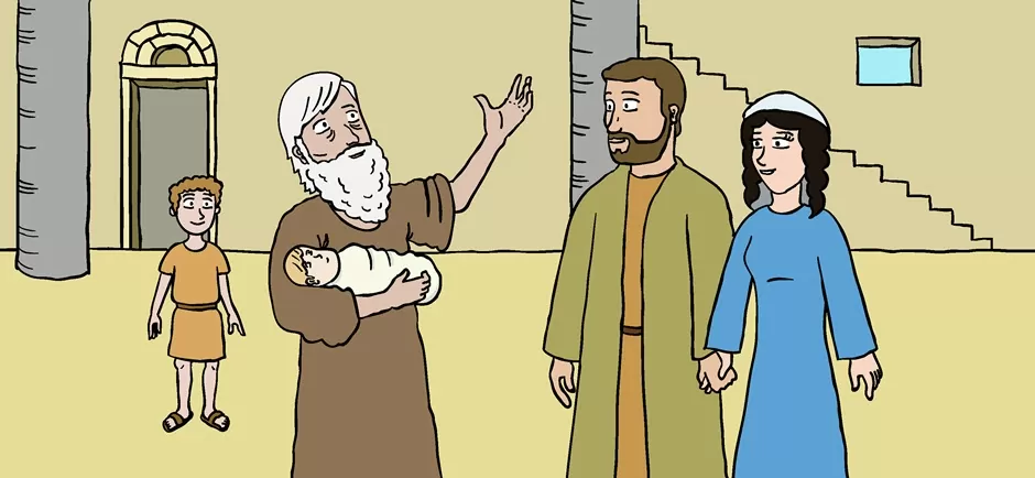 Quando furono compiuti i giorni della loro purificazione rituale, secondo la legge di Mosè, Maria e Giuseppe portarono il bambino a Gerusalemme per presentarlo al Signore come è scritto nella legge del Signore: «Ogni maschio primogenito sarà sacro al Signore» e per offrire in sacrificio una coppia di tortore o due giovani colombi, come prescrive la legge del Signore.